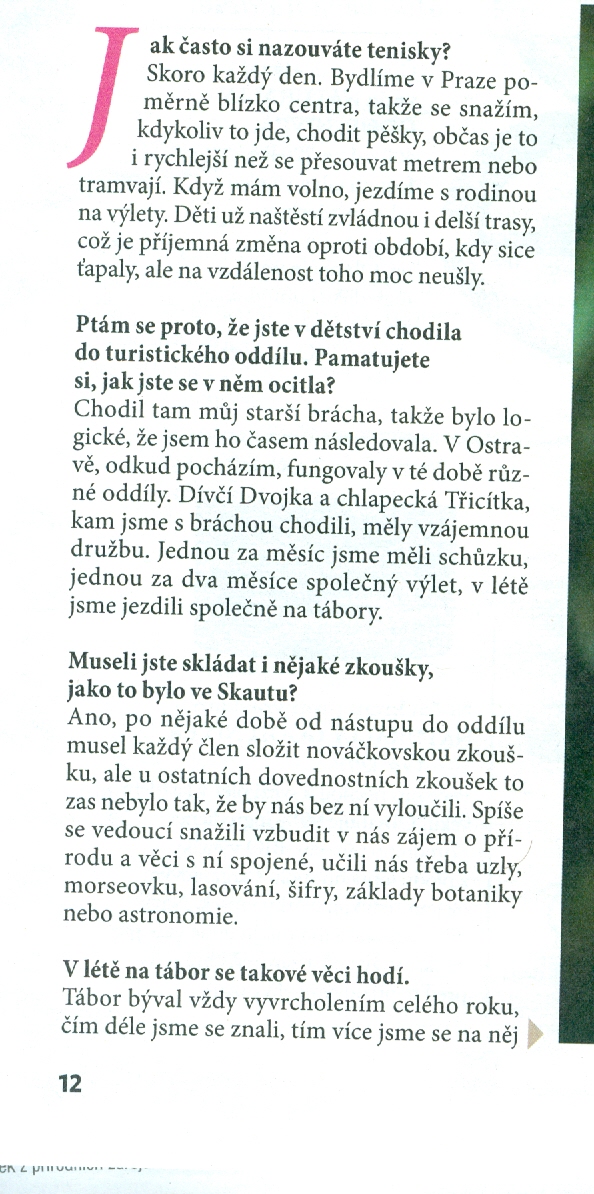 Milá slova Zuzany Kajnarové na téma oddíl, tábor a kamarádství naleznete v příloze ve vybrané části rozhovoru.