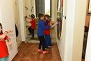 Odhalili například originální vývěsní štít a svítící tabuli, takže už tomíky a Asociaci TOM na pravém břehu Vltavy nejde přehlédnout. Dobově zrekonstruovaný dům se chlubí původními prvky z časů, kdy byl ještě židovským kupeckým domem. Z dílny Zlatých šípů do něj přibyly i všelijaké veselé dřevěné hrátky, které doplnila tvůrčí dvojice Tadeáš Klaban a Honza Rydlo a vznikl tak malebný svět, který pohltil nejen přítomné děti. Nakonec se v sobotu počasí umoudřilo a podvečerní slunce a grilování udělalo příjemnou tečku za čtyřletou náročnou rekonstrukcí, na které se kromě stavební firmy podílelo celé ústředí Asociace TOM a mnoho mladých brigádníků.