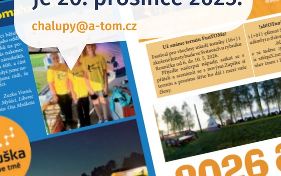 připomínáme, že uzávěrka následujícího čísla časopisu Tomík je 20. prosince. Prosíme, pošlete nám své články o vašich výpravách či oddílových akcích.