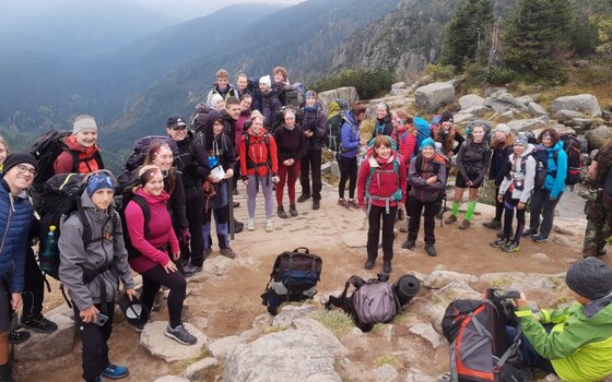 V sobotu ráno jsme vystartovali vlakem z Opavy, přestup v Pardubicích a následně busem z Železného Brodu do Harrachova. Dib nám všem rozdal vytištěné barevné mapy Krkonoš a vysvětlil, jak se bude hrát dlouhá hra, kam si zakreslovat trasu, kam sbírat razítka z chalup a různých zajímavých míst a jak zaznamenávat výjimečné krkonošské značení. V půl jedné jsme vyrazili na čtyřdenní pěší přechod Krkonoš. Podél Mumlavy k mohyle Hanče a Vrbaty, k Vrbatově boudě, nad Pančavským vodopádem k Labské boudě, kolem pramenů Labe na Voseckou boudu. Naše radost byla veliká, když jsme na stěnách restaurace uviděli dvě kytary, vedle stolů klavír. K tomu ukulele, které nesla celou cestu Miška, a bylo o zábavu postaráno. Kdo chtěl, si něco objednal a do 22,00 se zpívalo. A taky se špiclovali jeleni, kterých kolem bučelo opravdu nemálo. Po 18 odpoledních kilometrech a brzkém ranním vstávání super výkon.